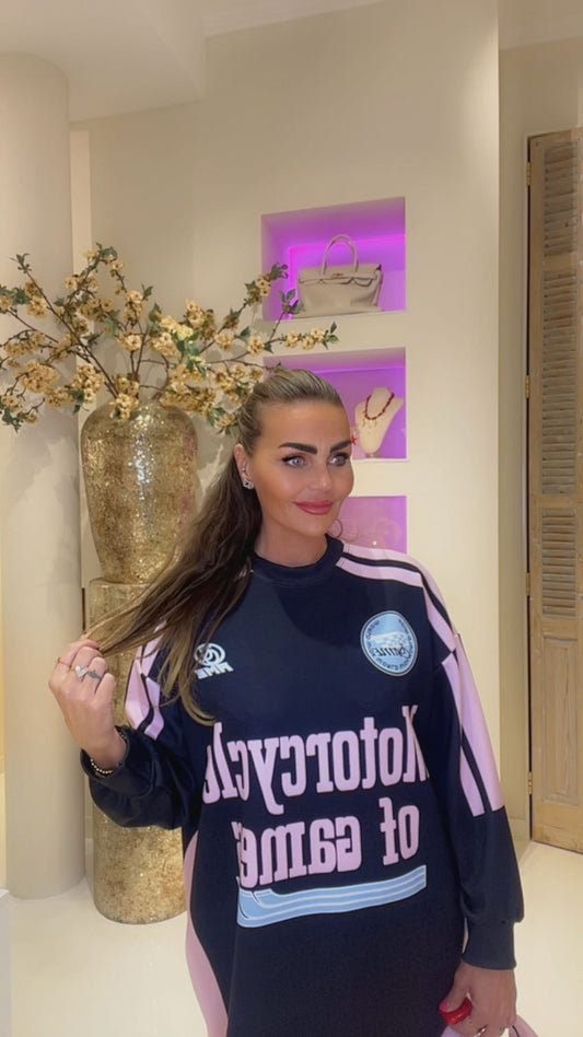 Motorcyclr sweater dress zwart/roze