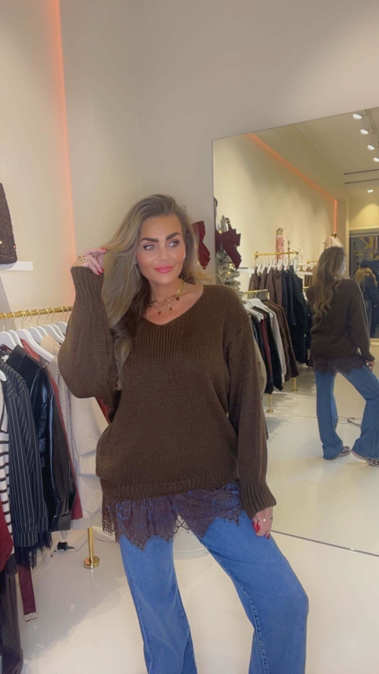 geweldige trui. v hals en kanten rand