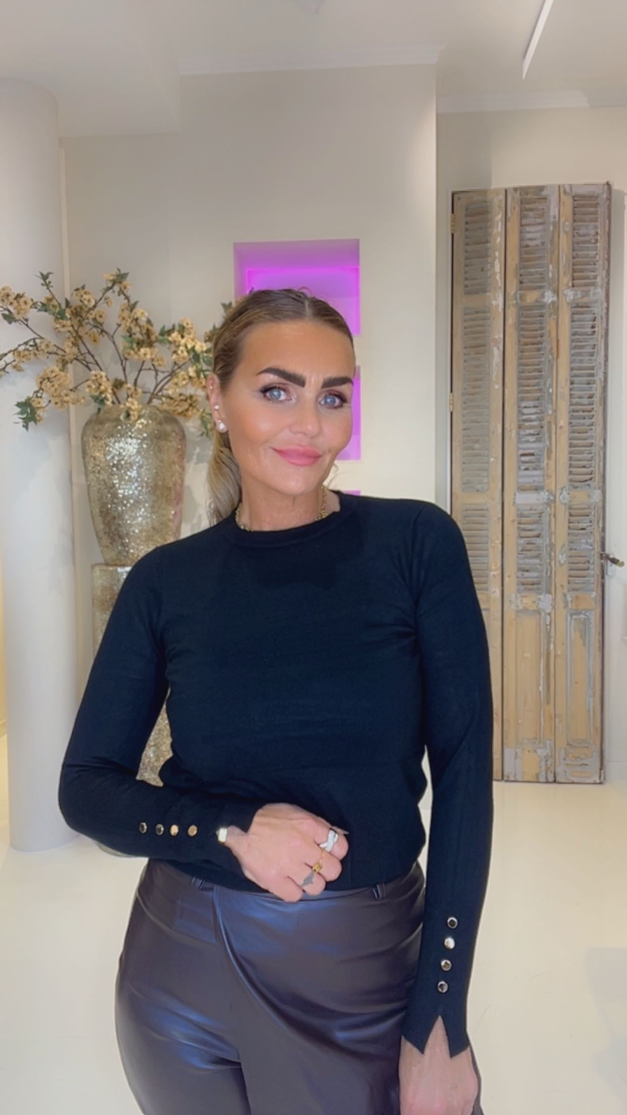 lekkere warme zachte basic top maar dan wel met gouden details op de mouwen voor een classy look