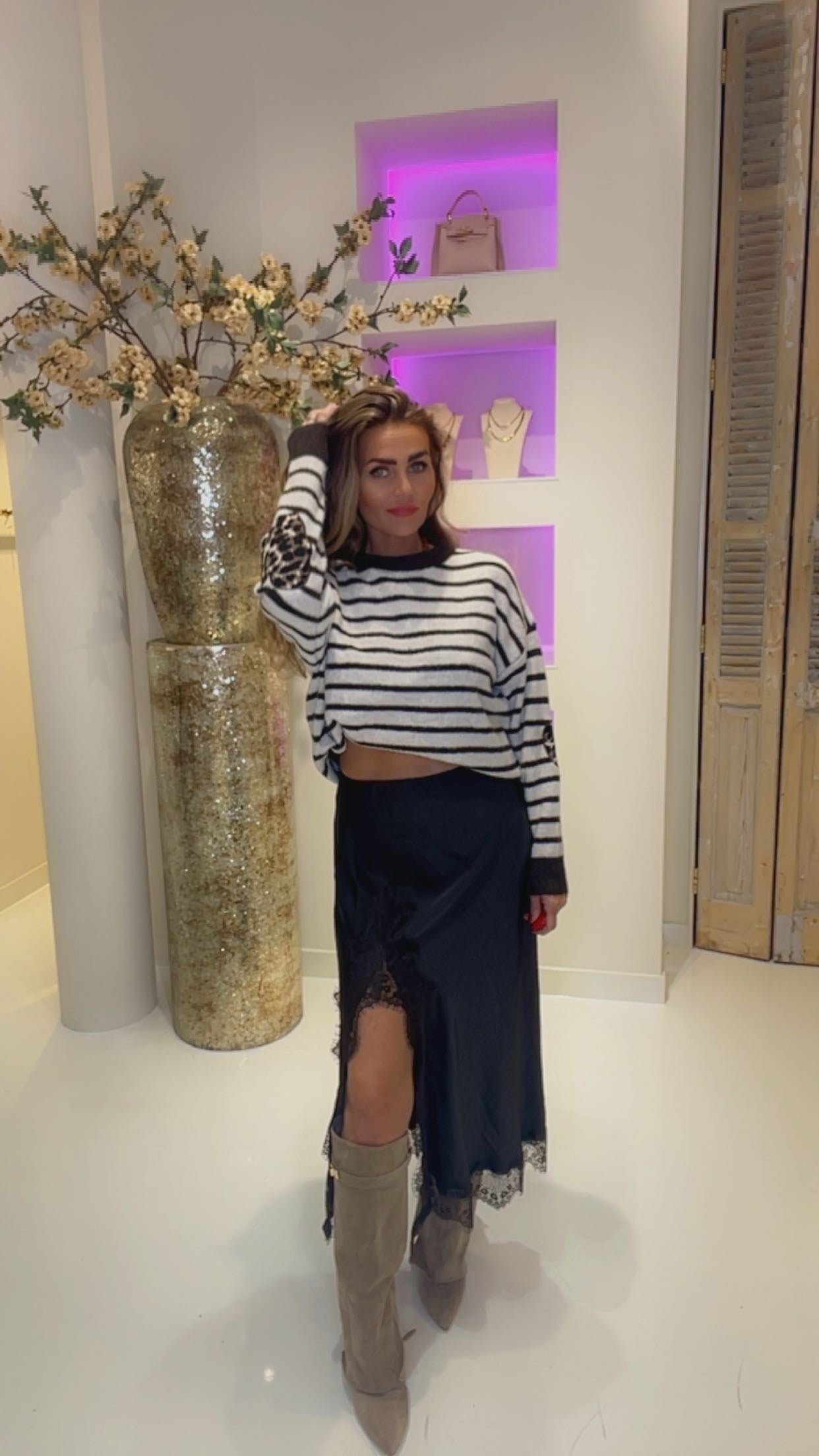 of met een comfi sweater en laarsjes